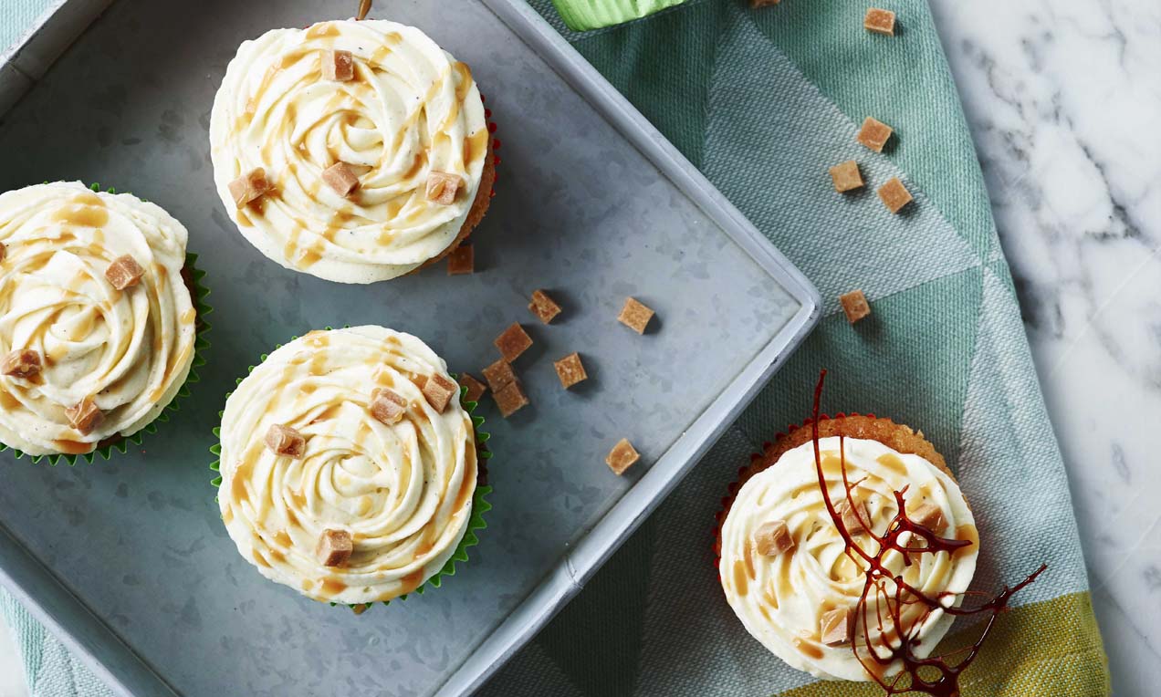Bananen Cupcakes - Saftige Cupcakes mit Frischkäse-Topping und Karamell-Stückchen