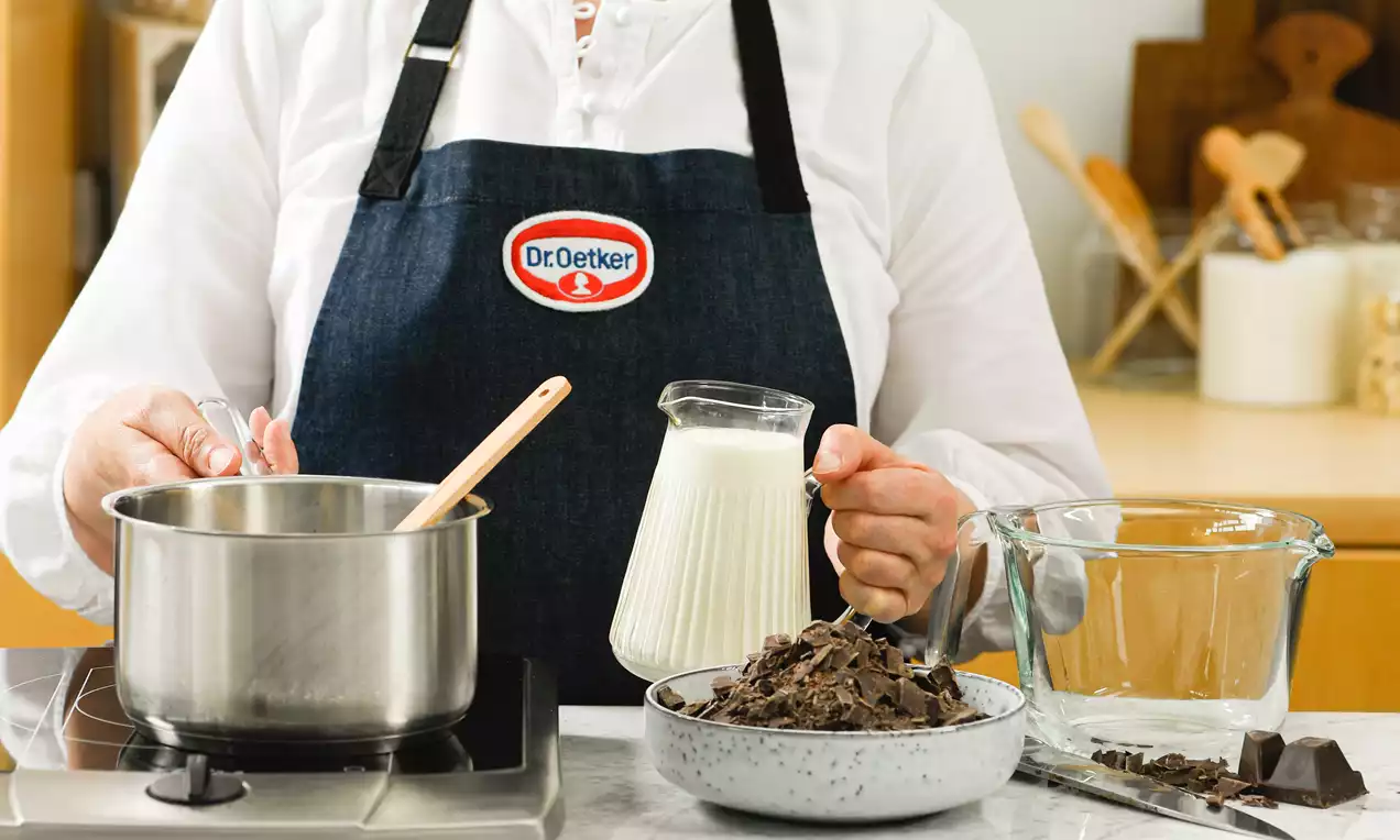 Soll die Ganache anschließend aufgeschlagen werden, wird sie nach der Zubereitung am besten in eine Rührschüssel umgefüllt.