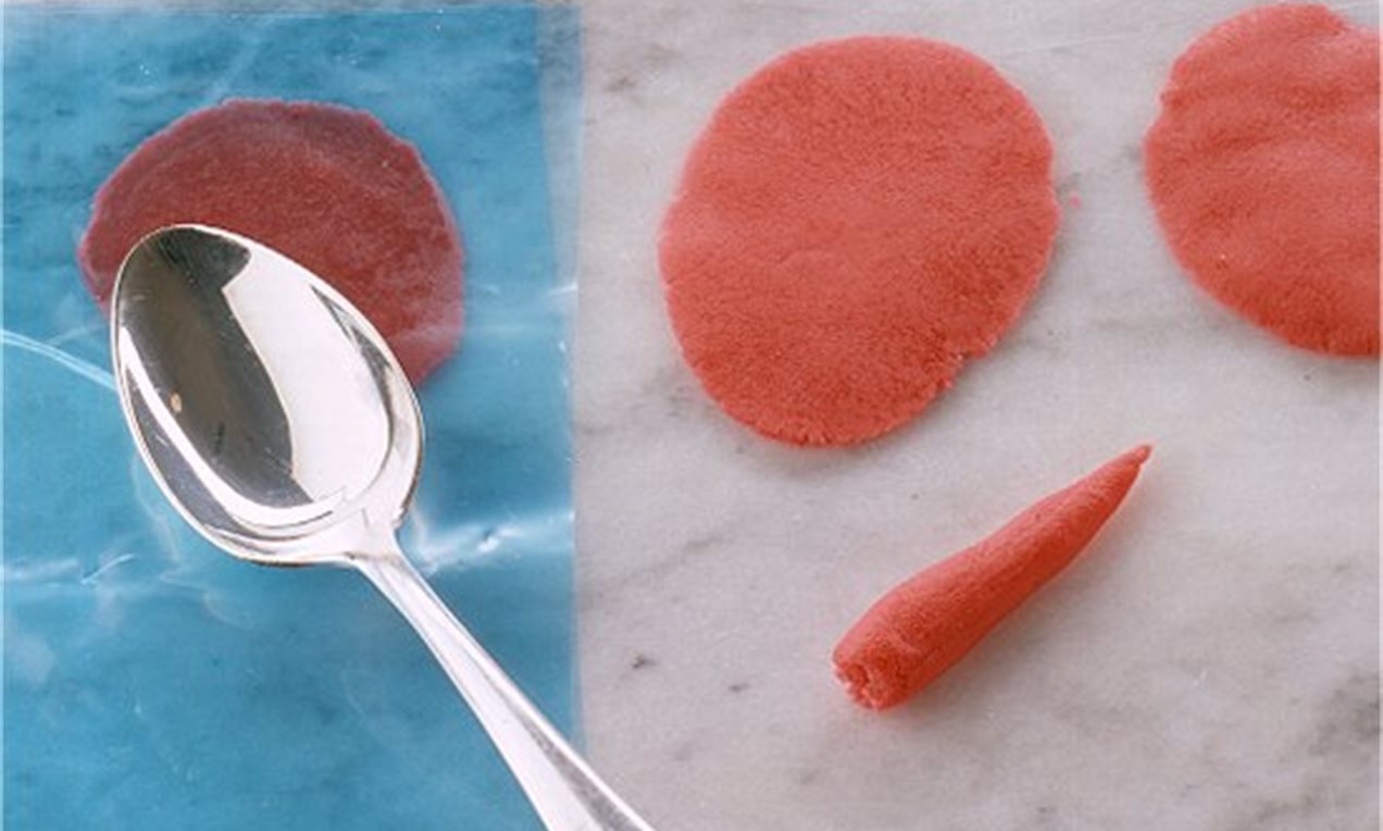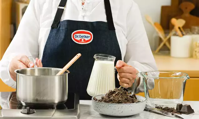 Für die Zubereitung von Garnierungen aus Marzipan die Marzipan-Rohmasse mit etwas Puderzucker verkneten, z. B. 100 g Marzipan-Rohmasse mit 20 g Puderzucker verkneten. Diese Masse ist leichter zu verarbeiten und klebt nicht so stark. Marzipan nach Belieben mit Dr. Oetker Kakao oder Dr. Oetker Back- & Speisefarbe einfärben.