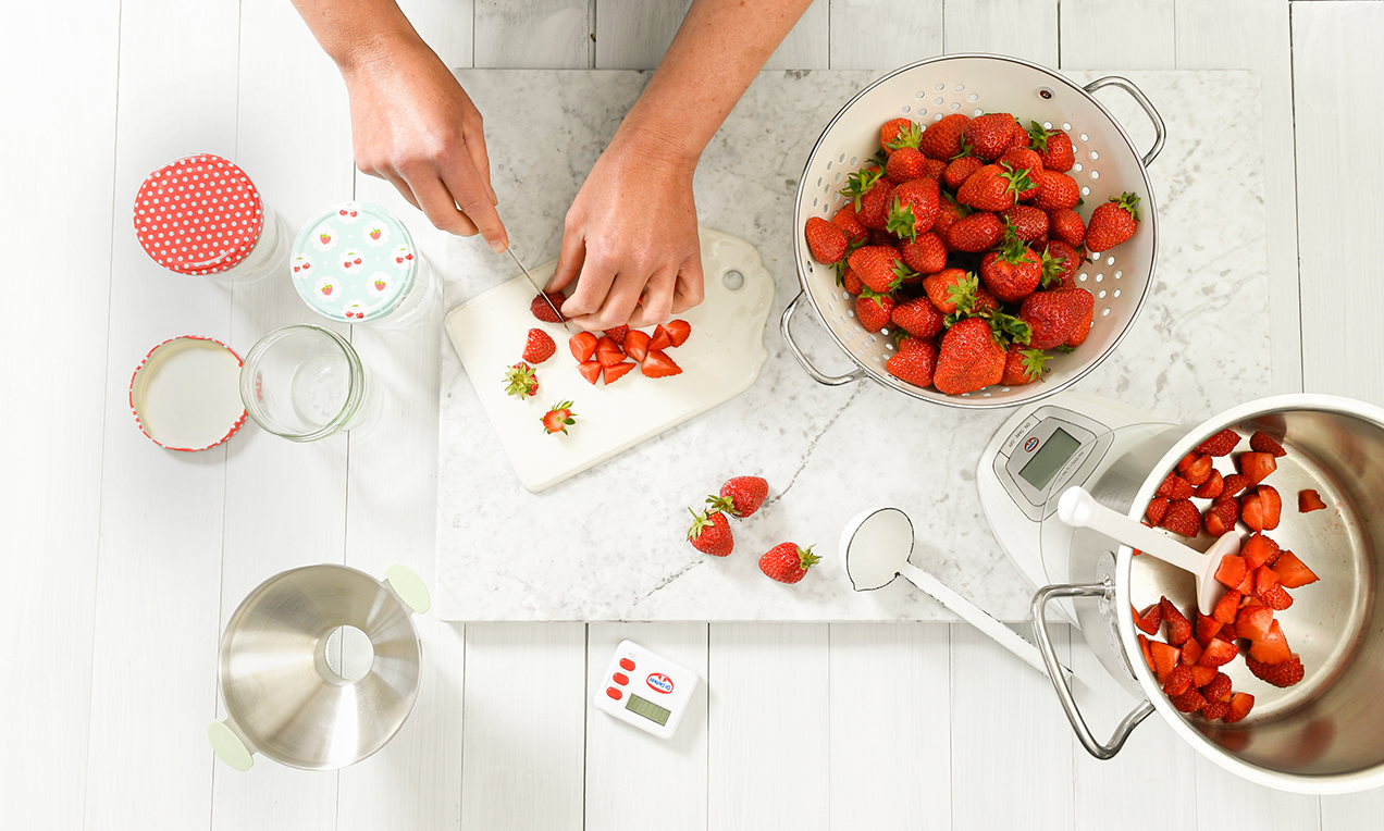Zum Kochen von Marmelade werden Schüsseln, ein Sieb, Einmachgläser mit Twist-off-Deckeln (nicht geeignet sind einige Honig- oder Nuss-Nougat-Creme Gläser), ein ausreichend großer Topf, ein Schneidebrett, ein Küchenmesser, eine Küchenwaage, ein Kochlöffel sowie eine Schöpfkelle benötigt. Diese Utensilien sollten sauber sein, um ein Verderben der gekochten Marmelade zu verhindern.