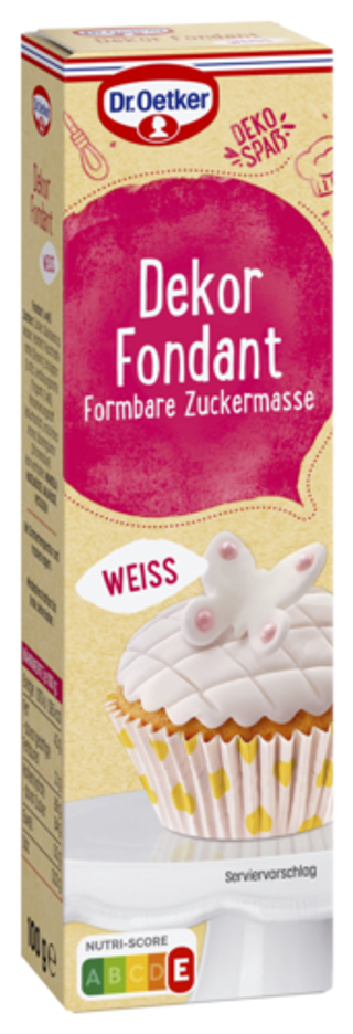 Dr. Oetker Dekor-Fondant eignet sich hervorragend zum Modellieren und Dekorieren. Werden die Muffins und kleine Kuchen mit modellierten Figuren aus Dekor-Fondant in den Farben rot, grün und weiß verziert, entstehen so aus einfachen Gebäcken kleine Kunstwerke. Der Phantasie sind dabei keine Grenzen gesetzt. So lässt sich für jeden Anlass ein individuelles Gebäck kreieren. Ob zum Geburtstag, zum Hochzeitstag oder zum Jubiläum, mit Dekor-Fondant und unseren Rezeptideen lässt sich für jeden Anlass genau das Richtige entdecken.