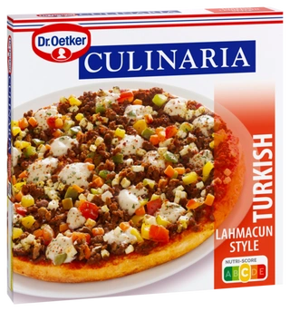 Die Culinaria-Pizza besticht durch ihren knusprigen Boden und ihre ausgefallen Auflagen. Culinaria bildet den Nutri-Score ab.