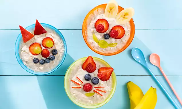 Milch oder Wasser aufkochen. Porridge in eine Schale geben, mit der kochenden Flüssigkeit verrühren und mind. 3 Min. ziehen lassen.