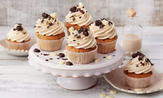 Den unteren Boden mit 1/3 der Baileys®-Creme bestreichen. Den mittleren Boden auflegen, mit Baileys® tränken und 1/3 der Baileys®-Creme darauf verstreichen. Den oberen Boden auflegen, leicht andrücken. Mit der restlichen Baileys®-Creme Tortenrand und -oberfläche bestreichen. Mit der Sahne aus dem Spritzbeutel verschieden große Tupfen auf die Baileys®-Torte spritzen. Die Baileys®-Torte mind. 2 Std. in den Kühlschrank stellen.