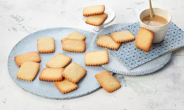 Plätzchen sofort nach dem Backen lösen und auf einem Kuchenrost erkalten lassen.