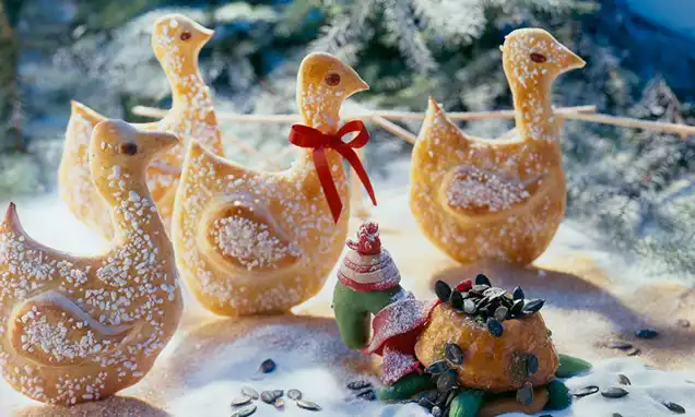 Die Rollen gleichmäßig in knapp 1 cm dicke Scheiben schneiden, auf das Backblech legen und backen.