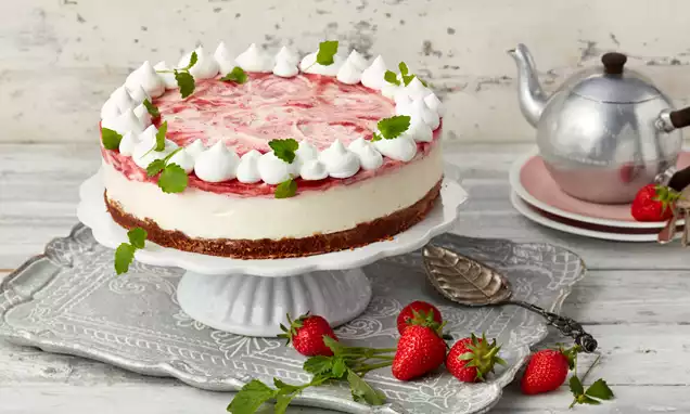 Springformrand lösen und entfernen. Boden auf einen mit Backpapier belegten Kuchenrost stürzen und erkalten lassen.
