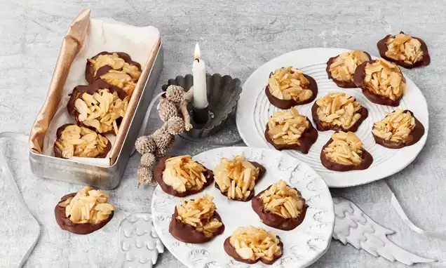 Mitgebackenes Backpapier abziehen und den Tortenboden auf eine Tortenplatte legen. Um den Tortenboden einen Tortenring stellen.