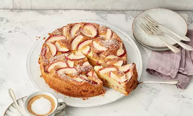 Mehl mit Backin in einer Rührschüssel mischen. Übrige Zutaten hinzufügen und alles mit einem Mixer (Rührstäbe) kurz auf niedrigster, dann auf höchster Stufe 2 Min. zu einem glatten Teig verarbeiten. Teig auf dem Backblech gleichmäßig verstreichen. Frau Holle Kuchen backen.