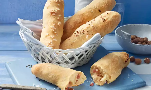 Für den Teig Butter in einem kleinen Topf zerlassen und abkühlen lassen. Backpapier in die Springform einspannen. Backofen vorheizen.