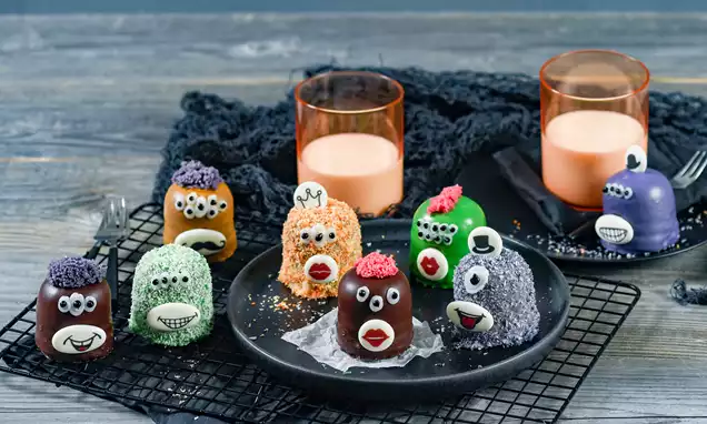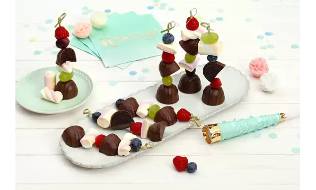 Kuvertüre getrennt in einen kleinen Gefrierbeutel geben, gut verschließen und im Wasserbad bei schwacher Hitze schmelzen. Jeweils eine kleine Ecke des Beutels abschneiden und die Eier damit verzieren. Die Eier mit den Dekorblüten dekorieren und die Kuvertüre fest werden lassen.