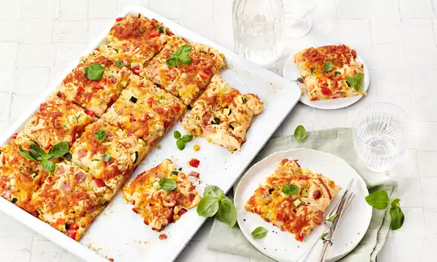 Das Backblech fetten und mit Backpapier belegen. Den Backrahmen (28 x 28 cm) darauf stellen. Den Backofen vorheizen.