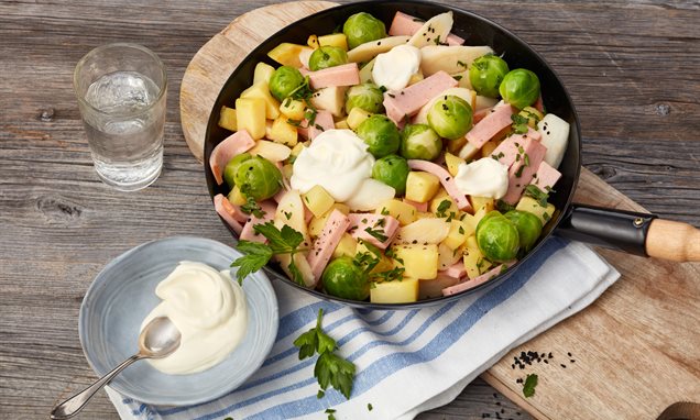 Gehackte Petersilie dazugeben. Gröstl mit Crème fraîche servieren.