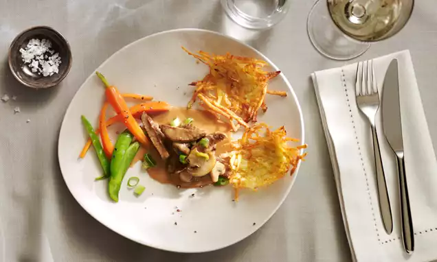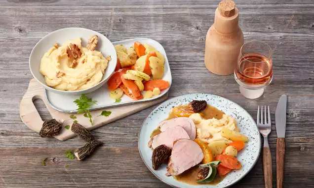Butter und Eigelb mit einem Kochlöffel unter die heiße Kartoffelmasse rühren. Den Teig mit Salz, Muskat und Kurkuma würzen. Dann Mehl und Gustin mit dem Kochlöffel unterrühren. Etwas Gustin auf die Arbeitsfläche geben. Lange Rollen formen. Walnussgroße Stücke schneiden und Klößchen formen. Diese mit einer Gabel etwas flach drücken. Gnocchi in kochendes Salzwasser (auf 1 l Wasser 1 TL Salz) geben, zum Kochen bringen und in etwa 10 Min. gar ziehen lassen (Wasser muss sich leicht bewegen). Mit einer Schaumkelle herausnehmen und auf eine vorgewärmte Platte geben.