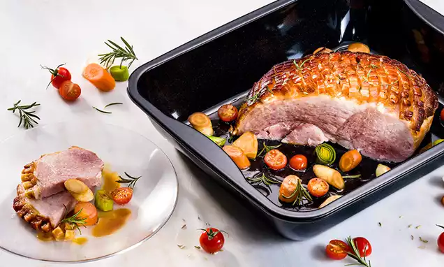 Auf einer Hälfte vom Backblech Meersalz verteilen. Darauf die Kartoffeln geben und in den Backofen schieben. Nach Hälfte der Garzeit die vorbereiteten Kürbisstücke auf die andere Blechhälfte geben und weich garen.