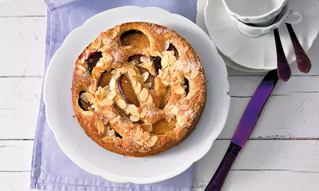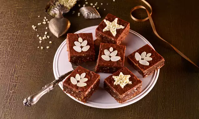 Wenn der Guss fest geworden ist, den Kuchen in beliebig große Stücke schneiden und in einer gut schließenden Dose aufbewahren.