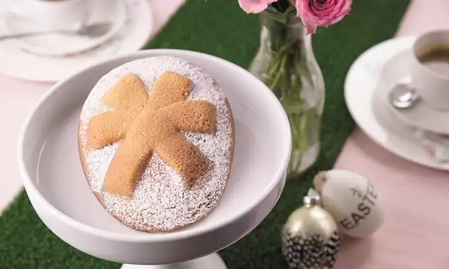 Fondant zwischen einem aufgeschnittenen großen Gefrierbeutel dünn ausrollen. Die gleiche Anzahl wie Kekse an Eiern (Ø etwa 6 cm) ausstechen. Jeweils etwas Buttercreme auf einer Keks-Seite verstreichen und ausgestochene Fondanteier auflegen.
