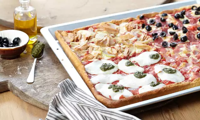 1 TL Butterschmalz in einer Pfanne erhitzen. Kartoffelscheiben darin von beiden Seiten braten, dann aus der Pfanne nehmen, mit Salz, Pfeffer und Paprikapulver würzen. In der Pfanne restliches Butterschmalz erhitzen. 3 hitzebeständige runde Ausstecher (Ø 10 cm) in die Pfanne stellen. In jedem Ring je 1 Spiegelei braten und mit Salz würzen. Bratkartoffeln sowie Spiegeleier auf der gebackenen Pizza verteilen.