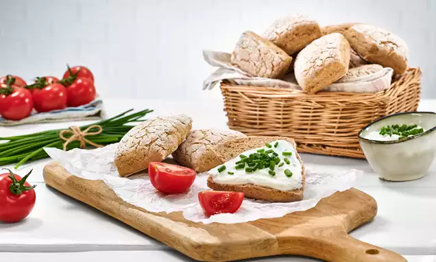 Die Backofentemperatur reduzieren und das Brot weiterbacken. Das Roggen-Dinkelbrot ggf. mit Backpapier abdecken, damit es nicht zu dunkel wird.