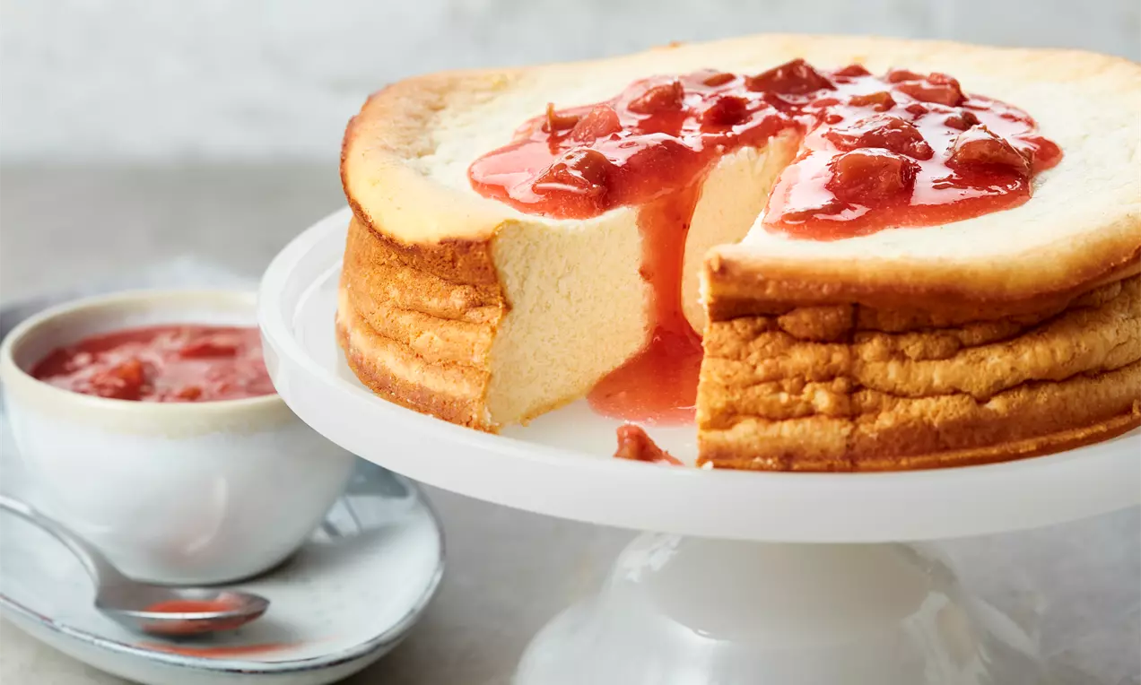 Springformrand lösen und entfernen. Den schnellen Käsekuchen auf einem Kuchenrost erkalten lassen.