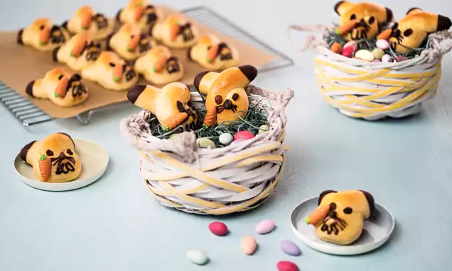 Mehl mit Backin in einer Rührschüssel mischen. Übrige Zutaten - bis auf die Haselnüsse und Chunks - hinzufügen. Alles mit einem Mixer (Knethaken) kurz auf niedrigster, dann auf höchster Stufe zu Streuseln verarbeiten. Haselnüsse und Chunks hinzufügen und zu einem glatten Teig verarbeiten. Teig halbieren. Eine Hälfte mit Kakao und Milch verkneten.