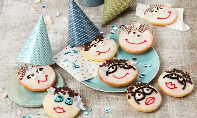 Die Kekse nach Belieben mit Puderzucker, Kakao oder weißer Zuckerschrift dekorieren.