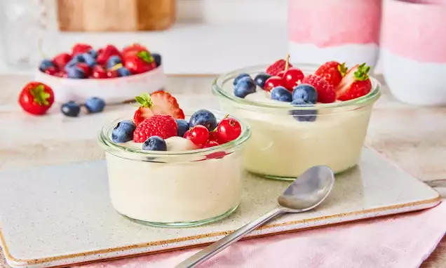 Gelatine nach Packungsanleitung einweichen. Heidelbeeren auftauen lassen.