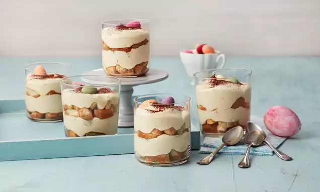 Die Hälfte der Rotweincreme auf etwa 4 Gläser verteilen. Jeweils etwa 5 Himbeeren daraufsetzen. Dann den Joghurt daraufgeben. Eine Schicht zerkleinerte Schokolade draufgeben. Die restliche Rotweincreme auf die Gläser verteilen und etwa 1 Std. in den Kühlschrank stellen.