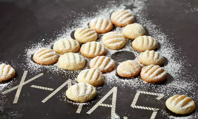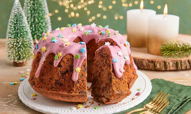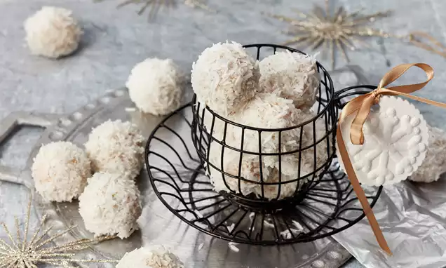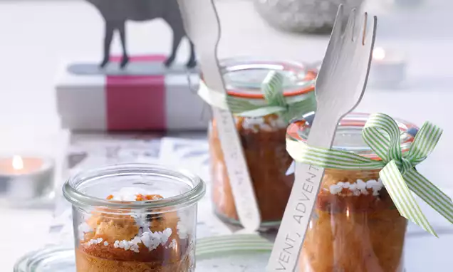 Kurz vor dem Servieren Marzipanblüten auflegen.