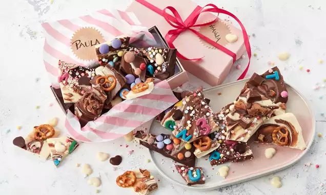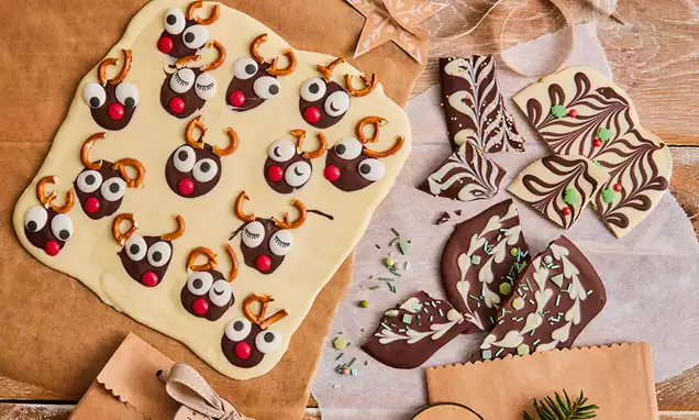 Schokolade im Wasserbad schmelzen, Finesse und Lebkuchengewürz unterrühren. Mandeln und Orangeat unterheben und mit Hilfe von 2 Teelöffeln die Schokoladen-Mandel-Masse in kleinen Häufchen auf das Backblech setzen. Die Mandelsplitter auf dem Blech kühl stellen, bis die Schokolade fest geworden ist.