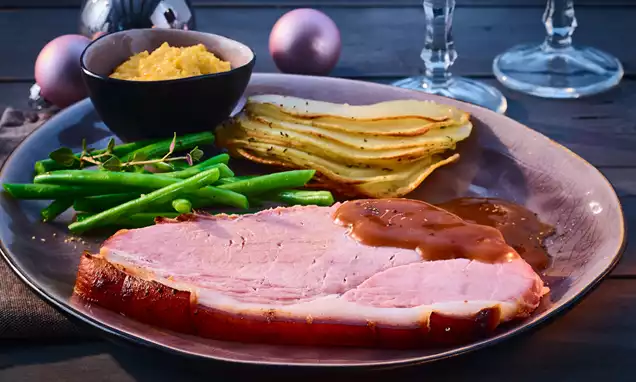 Die Weihnachtsente in Portionsstücke schneiden (tranchieren), Soße dazu servieren und mit den Schnittlauchröllchen bestreuen.