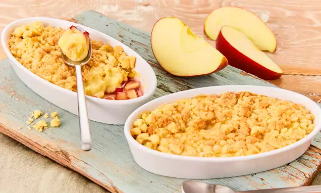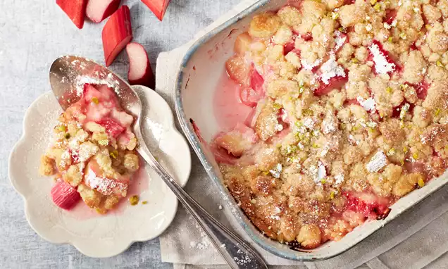 Der vegane Rhabarber-Erdbeer-Crumble sorgt nicht nur bei Frucht-Freunden für ein himmlisches Geschmackserlebnis. Dieser fruchtig-knusprige und noch dazu vegane Nachtisch lässt sich nicht nur kalt, sondern auch wunderbar warm genießen.