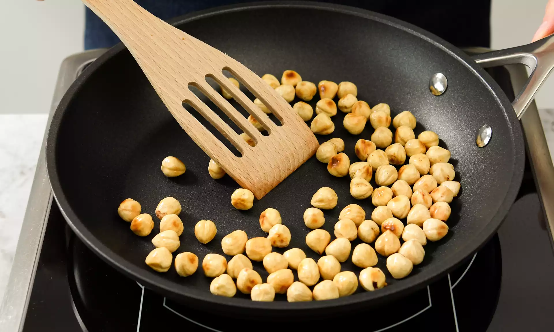 Nüsse und Kerne nach dem Rösten nicht in der Pfanne, sondern auf einem Teller erkalten lassen.